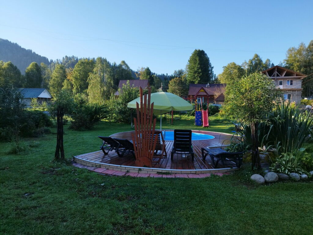 К услугам отдыхающих: четыре двухэтажных дома из алтайского кедра, два из которых с террасами, около каждого дома шашлычная зона. Большой живописный сад, баня, беседки с видом на Телецкое озеро и р. Бию, большая лужайка для подвижных игр (футбол, волейбол, бадминтон и пр.), бассейн, велосипеды, гамак, автостоянка, Wi-Fi. Ждём Вас!
