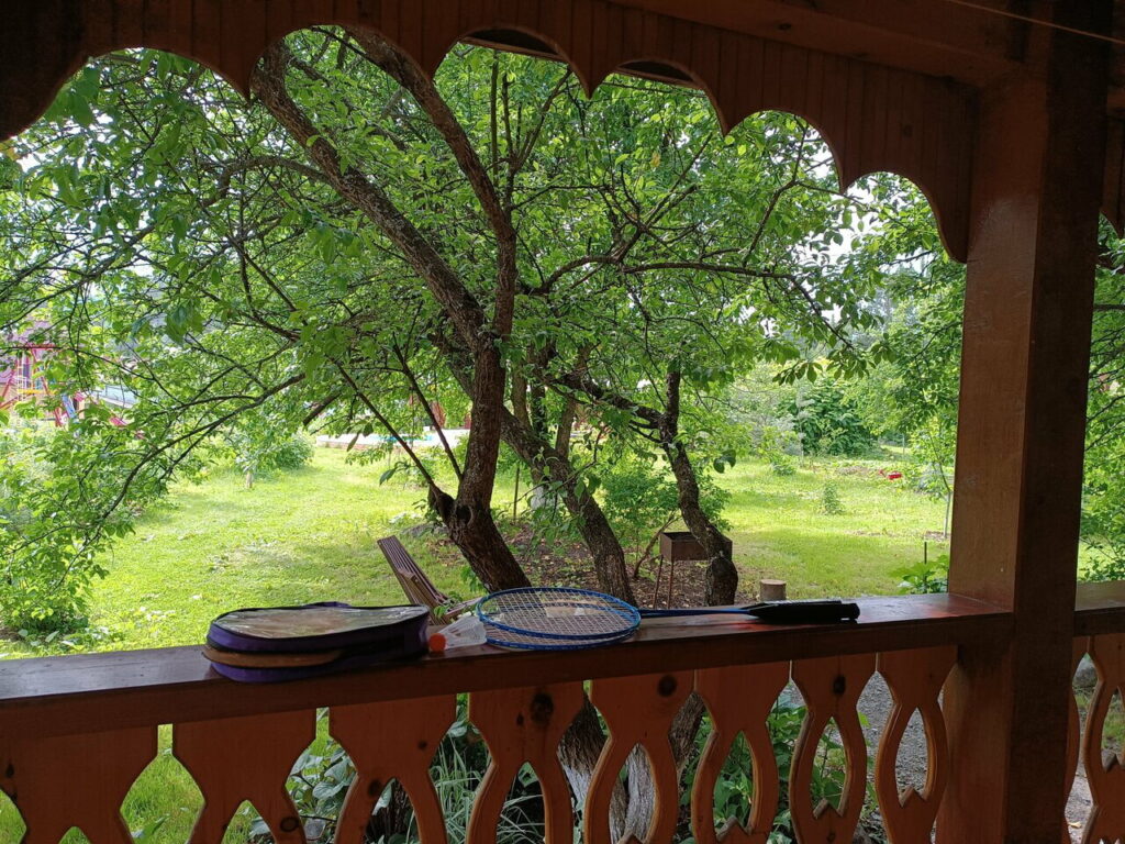 Приподнятость над уровнем воды обеспечивает защиту от ветра и от утренней и вечерней сырости. На территории усадьбы много цветов, а так же большой фруктовый сад в котором буквально утопают гостевые дома и кстати перед одним из них есть танцевальная площадка. Будем рады принять у себя компании и семьи с детьми, ведь территория усадьбы очень обширна, что очень понравится маленьким исследователям.