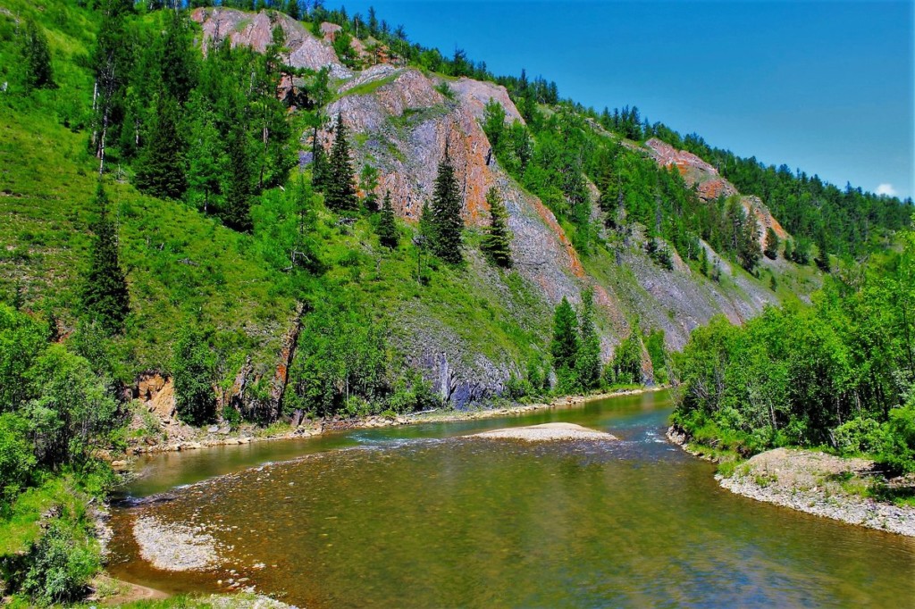 Белый Июс берёт начало из мелких горных озёр на высоте более 1000 м на северо-восточных склонах Кузнецкого Алатау В верховье река имеет горный характер, в низовье – равнинный. В верховье Белого Июса ведётся добыча золота (Коммунар, Беренжак). Горнодобывающая промышленность нанесла заметный урон продуктивности рыбного стада. В реке сократилась численность рыб таких промысловых видов, как хариус, ленок, таймень, а нельма практически исчезла. В районе сёл Ефремкино и Малая Сыя на берегу реки обнаружены карстовые пещеры и экзотические скальные обнажения с наскальными рисунками. Здесь находилось самое раннее поселение древнего человека на территории Хакасии (30–35 тыс. лет назад), которое в настоящее время признано памятником истории (пещеры Ящик Пандоры, Археологическая и др.). Река сплавная. С целью охраны пещерных комплексов, биоценозов лесного и подтаёжного пояса, мест обитания копытных, гнездовий редких хищных птиц создан Государственный природный зоологический заказник «Июсский». Точка стоит на пересечении с дорогой к селу Гайдаровск, т.к. здесь можно и остановиться на рыбалку и посетить Све Чебании. А при желании продолжить путь к деревне Чебаки и ознакомиться с еще одним культурно-архитектурным объектом — Домом Иваницкого. Знаментитого золотопромышленника